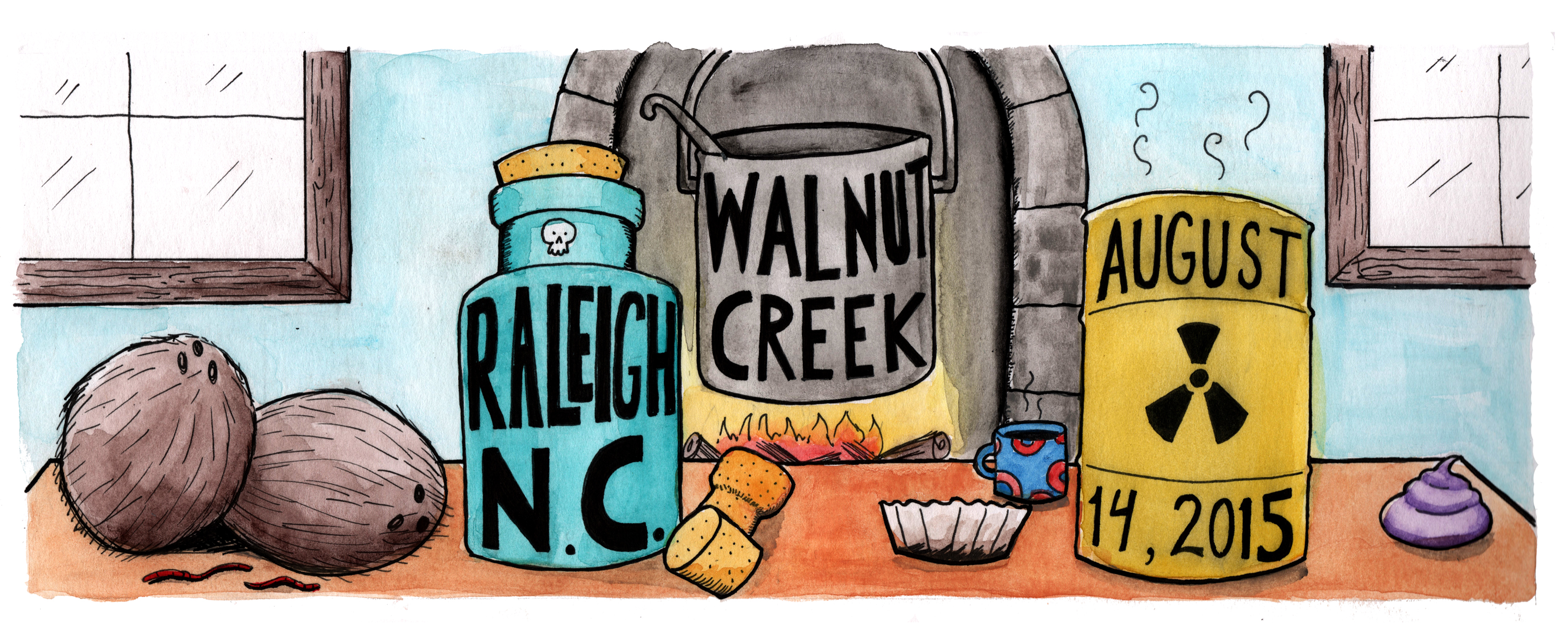 I recently got a message from somebody stating ” I love the setlists, but the header makes no sense!” They were upset that I drew mountain for the Kansas City show, everyone knowing that Kansas has no mountains. I was kind of excited, because this was the first time I’d received a comment regarding my headers. I’d consider these my favorite part of creating my illustrated setlists, since each one is different, and carries a significance about the show. When I started doing the setlists in 2014, most were an illustration based on the venue itself. They were inked drawings that were colored digitally, and I was never a fan of them (I’ve had no formal Photoshop training, so it’s been a learning process). When I was sketching out ideas for this year’s setlists, one of my main goals was to avoid digital as much as possible. My second concern was what the theme would be. I didn’t want to do the same thing as last year, since I figured they would play venues they’d played in 2014. Right before summer tour started, I had done a commissioned piece that consisted of illustrations of the whole Gamehendge saga, including all the other songs that have been confirmed to be related to TMWSIY, or took place in Gamehendge (at least according to the internet). Having sketched (and drawn) all these songs, it seemed fitting to use this as the basis of 2015’s summer tour. I used all the songs from TMWSIY, as well as a couple songs that are Gamehendge related. The last couple shows are based on songs played at the shows.