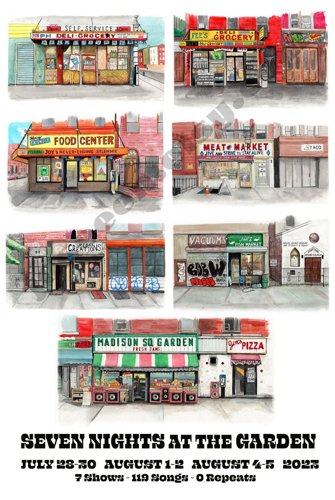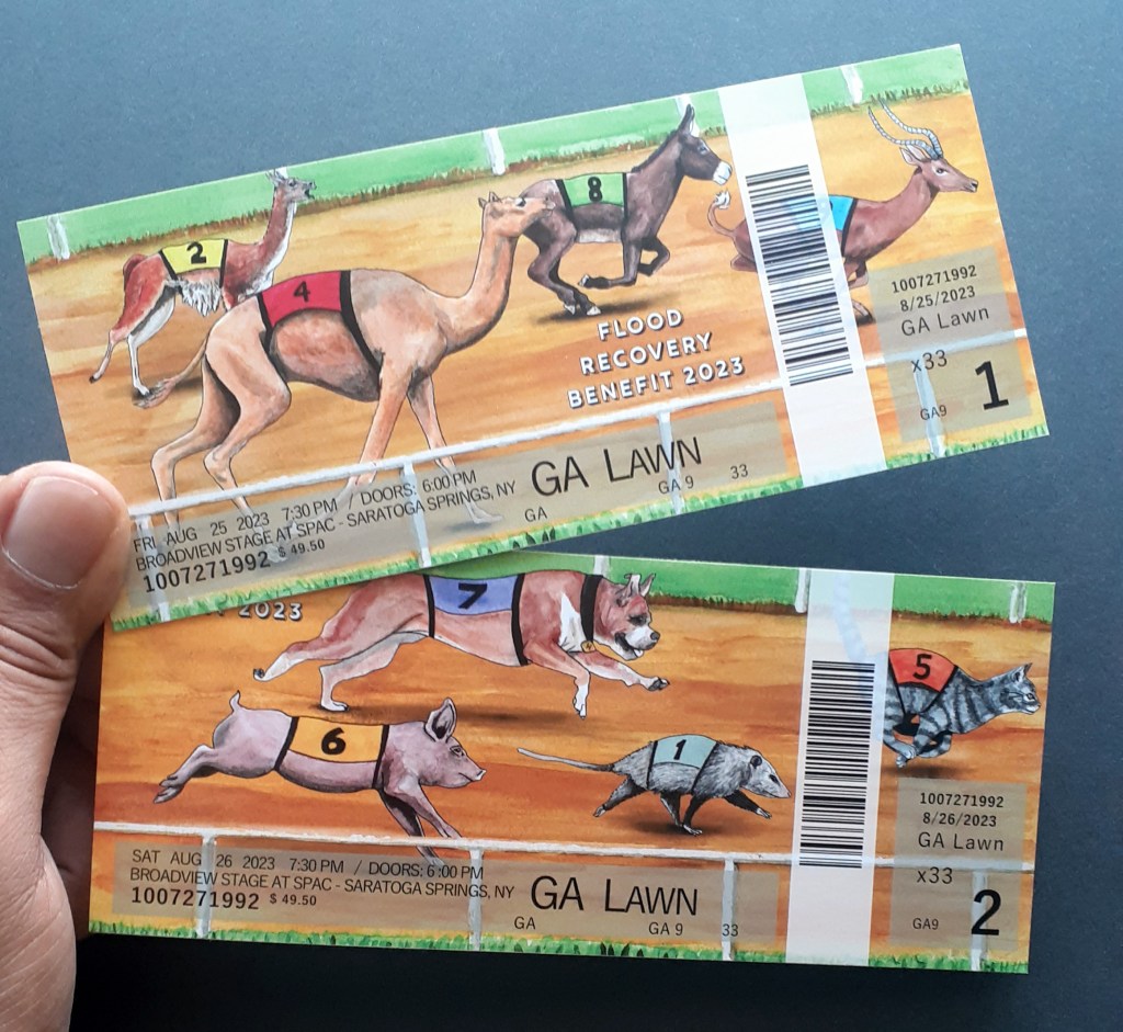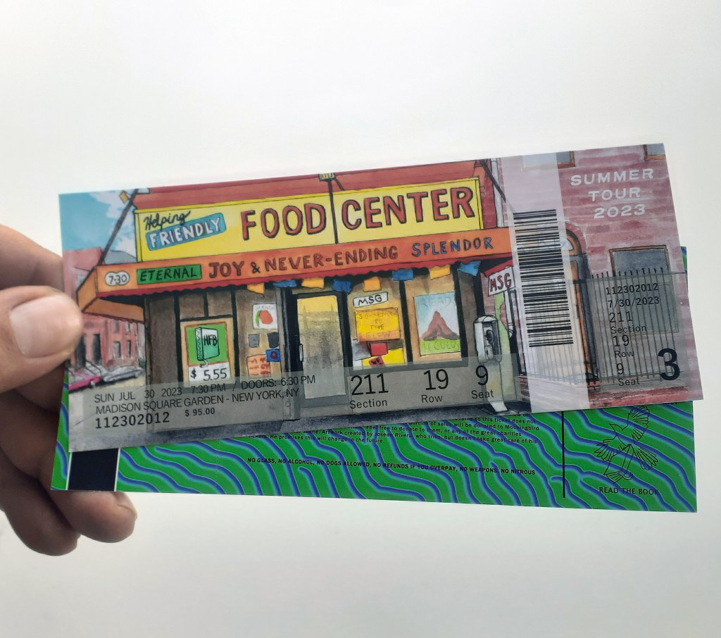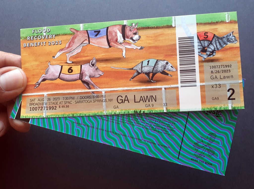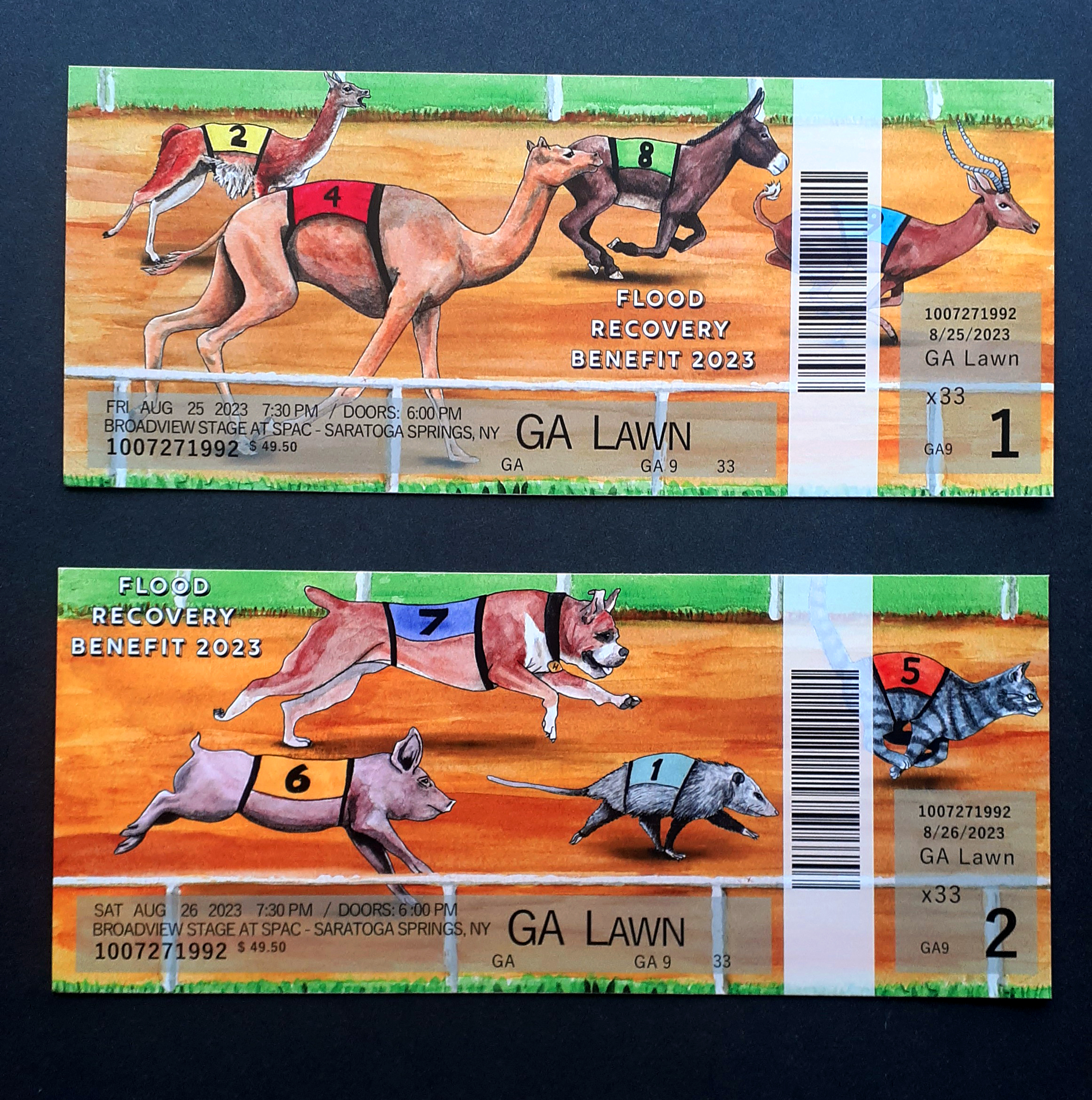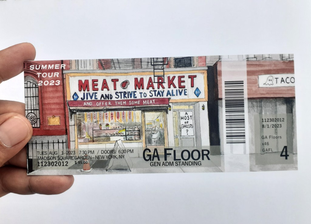 My commemorative ticket stubs for Phish’s 4-day run at Dick’s Sporting Goods Park in Commerce City, CO. The original art was watercolor on paper, which was then scanned to create the tickets. Inspired by PTBM (Phish tickets by mail) ticket stubs. The barcode actually scans and links to each night’s setlist on Phish.net!