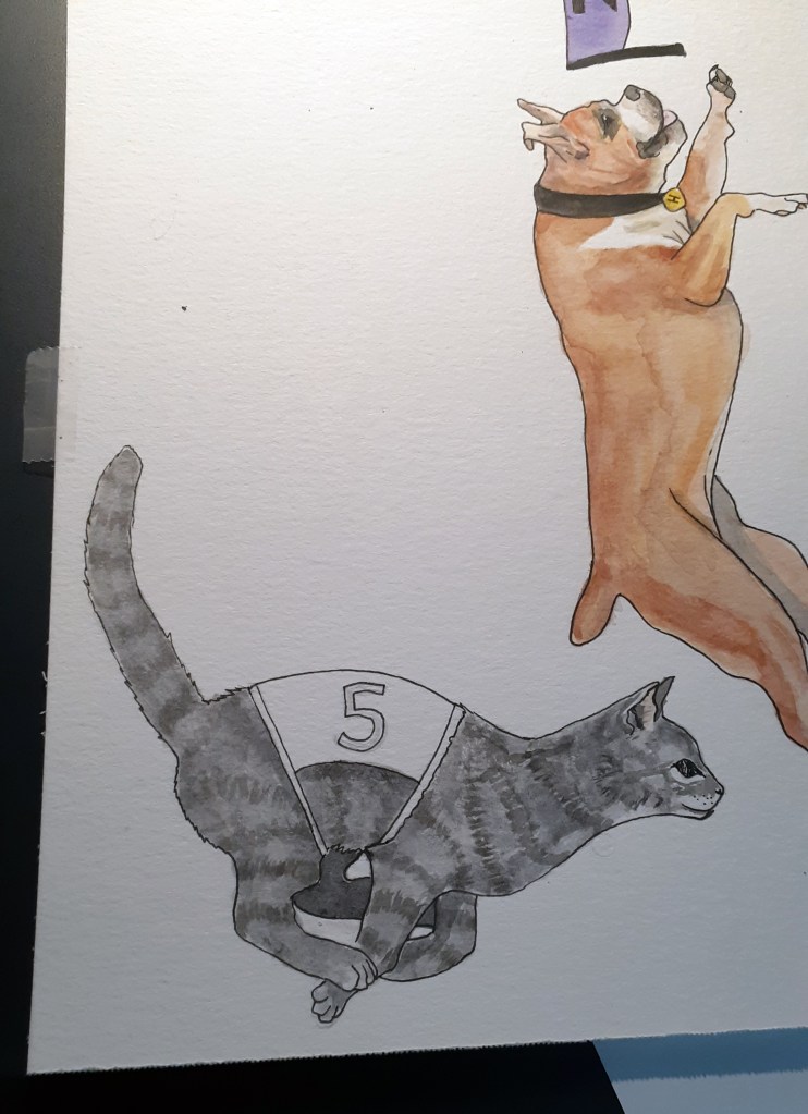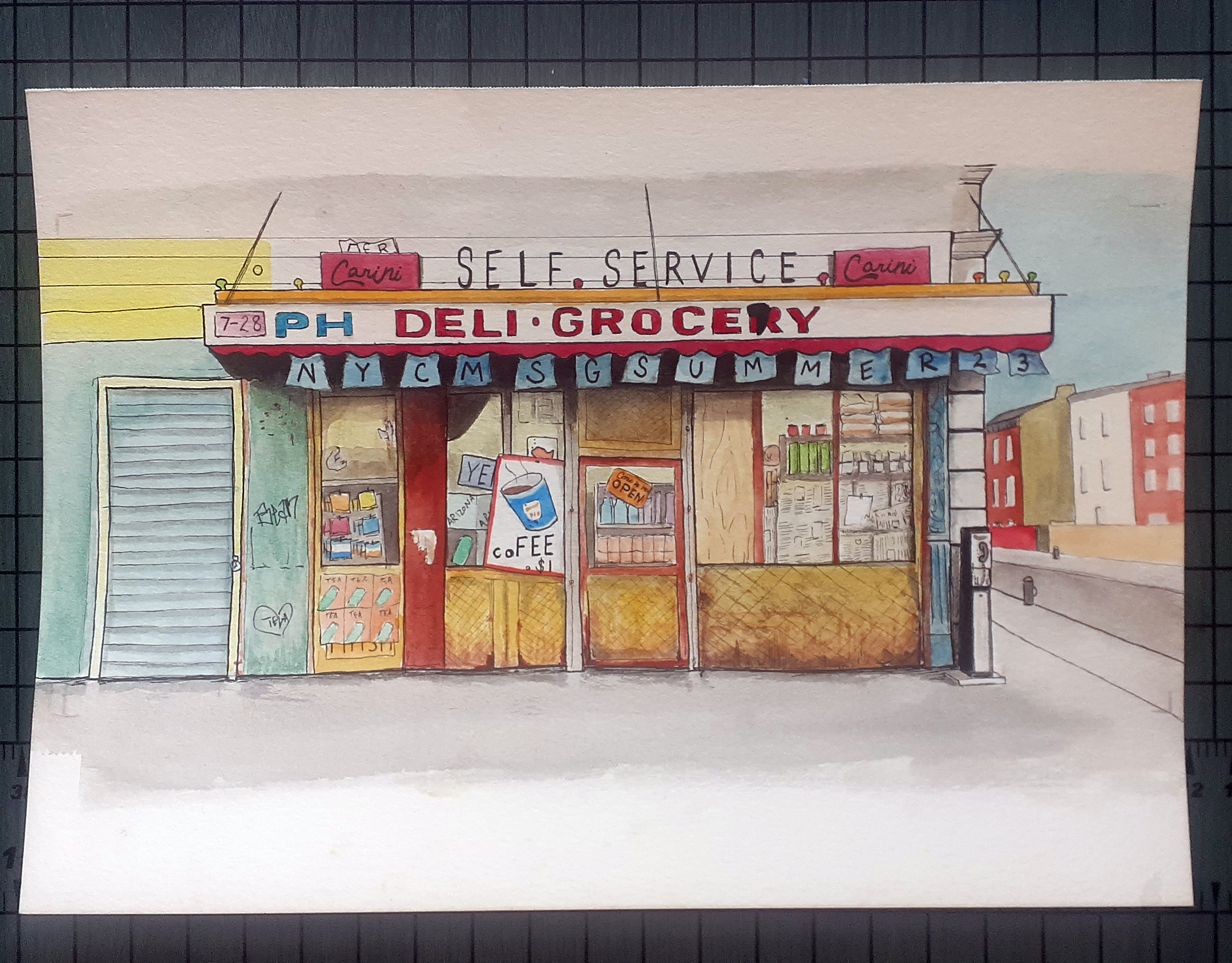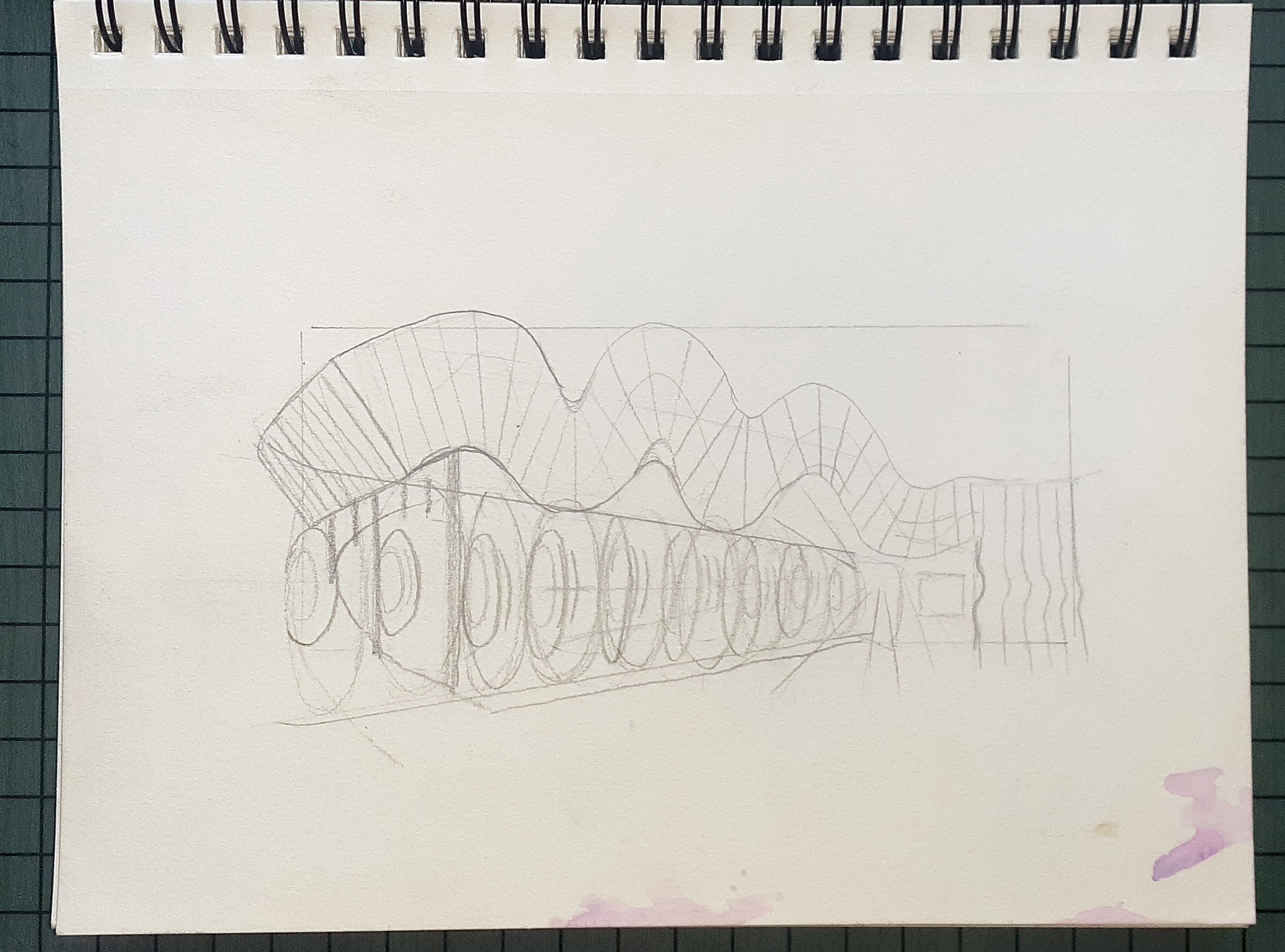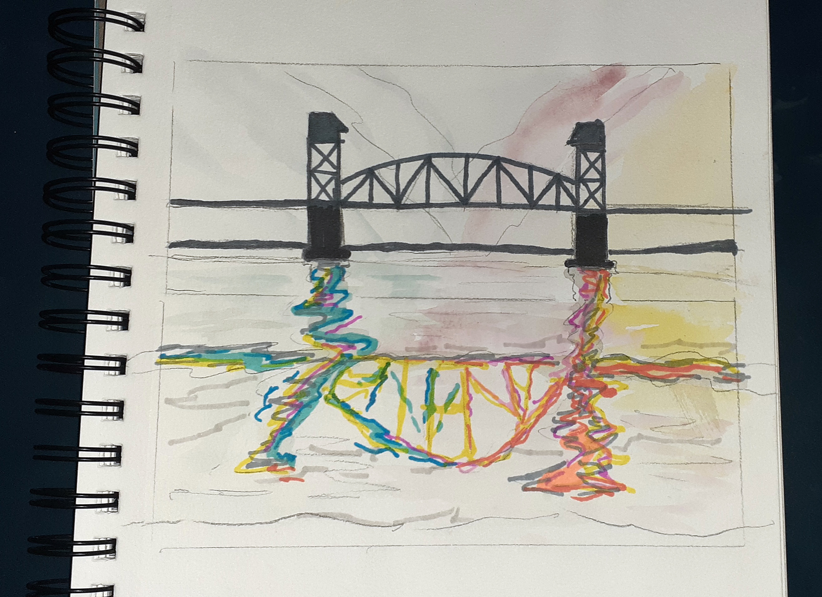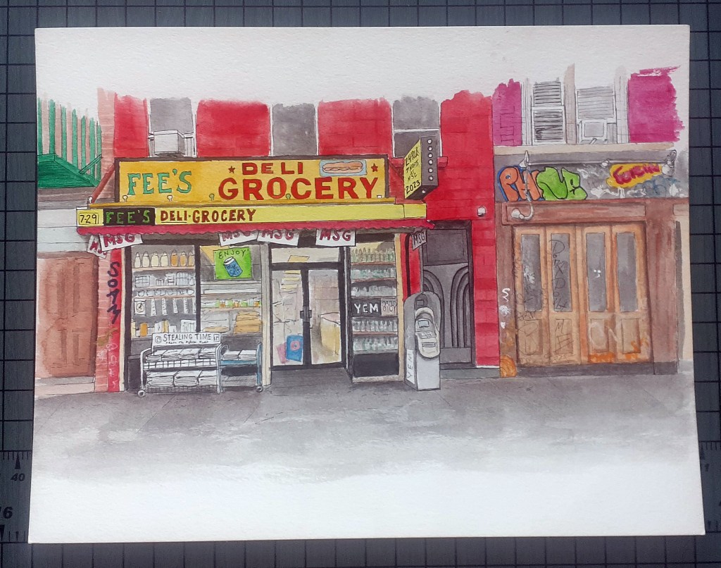 By the time I started working on these, my summer had ended and I was back to teaching. My free time was very limited, and the surprise of the SPAC shows threw my timeline off. In my search for inspiration, I was looking at pictures of the view of Denver from Commerce City. At this point, I was getting frustrated and in a state of artistic delirium, just thought “What if I replace the mountains with the buildings? What if I replace the clouds with buildings?” This amused me enough that I sketched up the possible scenarios and then created the paintings. Working on these was beneficial in dealing with the stress involved with a new school year. I must admit that I prolonged how long they took to complete since it was one of the things I looked forward to most when getting home from school, besides seeing my wife and cat!