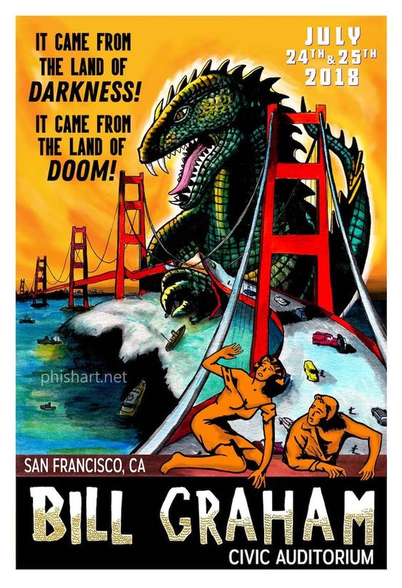 In 2018 I created a series of show prints inspired by vintage monster movie posters. I ended up creating 17 posters for the summer, fall, and NYE runs, and of course, had to incorporate some Gamehendge characters in a few!