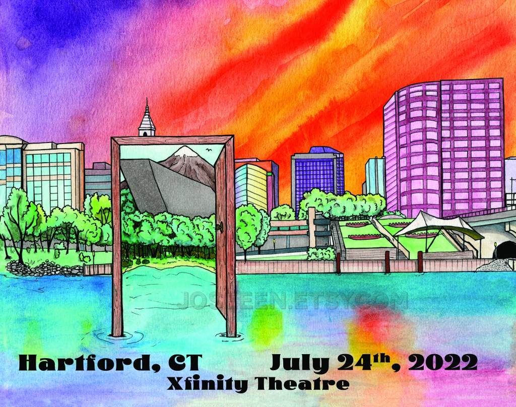 In 2022, concert tickets went digital, which meant that there were no more Phish Tickets by Mail (PTBMs). The beauty of these tickets was that they featured cool art and looked way better in a fan’s ticket stub collection than a boring Ticketmaster ticket stub. A casual mention from my wife resulted in me creating my own ticket stubs modeled after PTBMs! The art for these stubs was inspired by the venue location and Phish songs. Each illustration I created was designed to create a larger image when the stubs were lined up vertically.