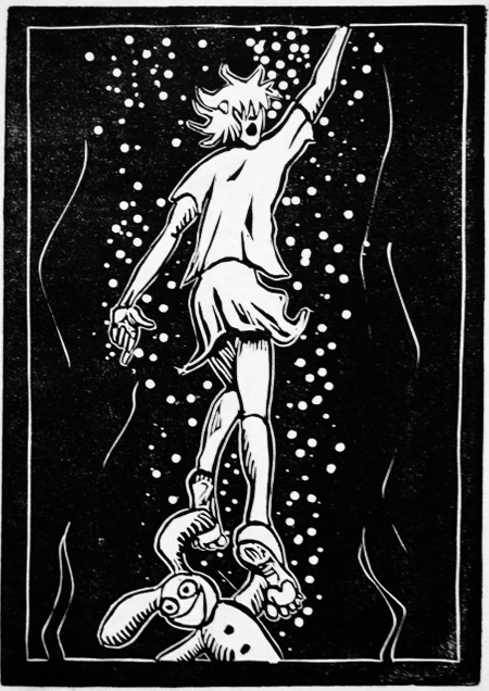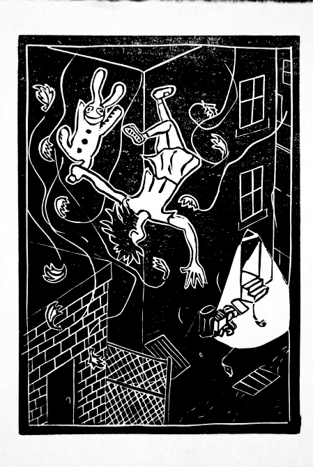 One thing I noticed about the music of Phish was how easy it was to visualize the lyrics into drawings. In 2003 I created a linocut series of block prints inspired by the song “Esther”, a Gamehendge-adjacent song. At the time, I was unaware that there was a whole scene of artists creating work inspired by Phish; I just felt the song worked great as a series of prints!