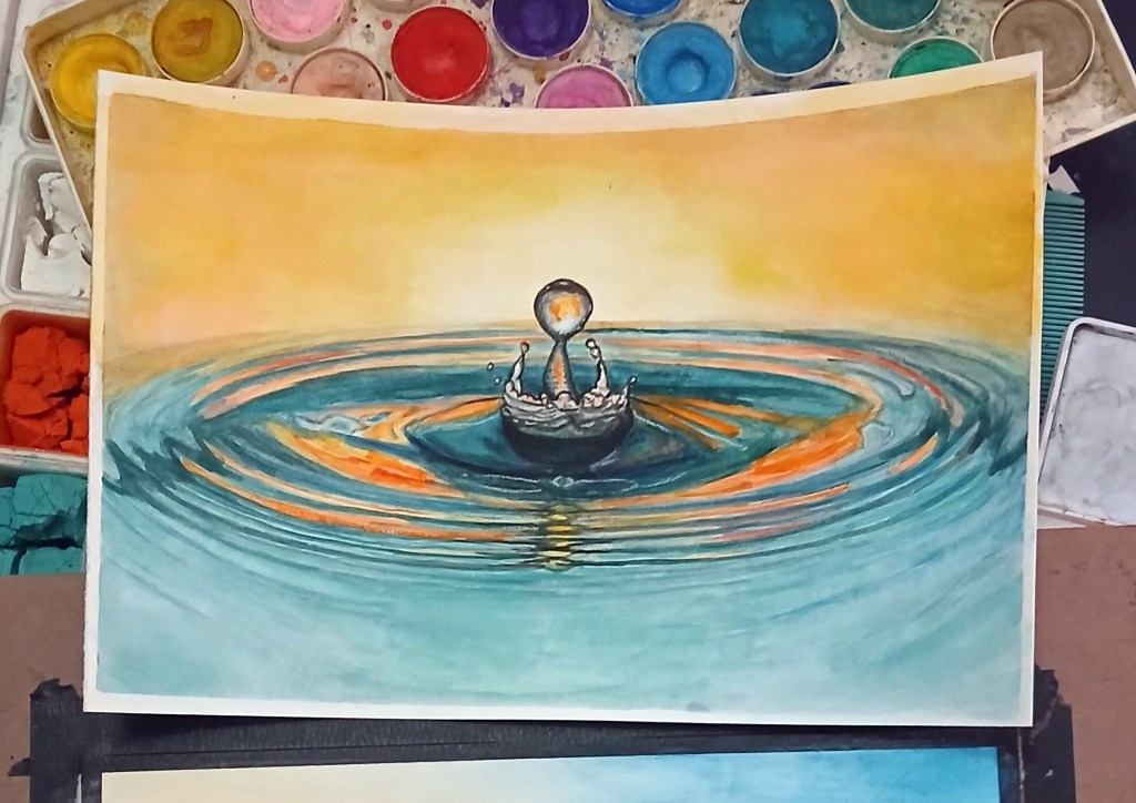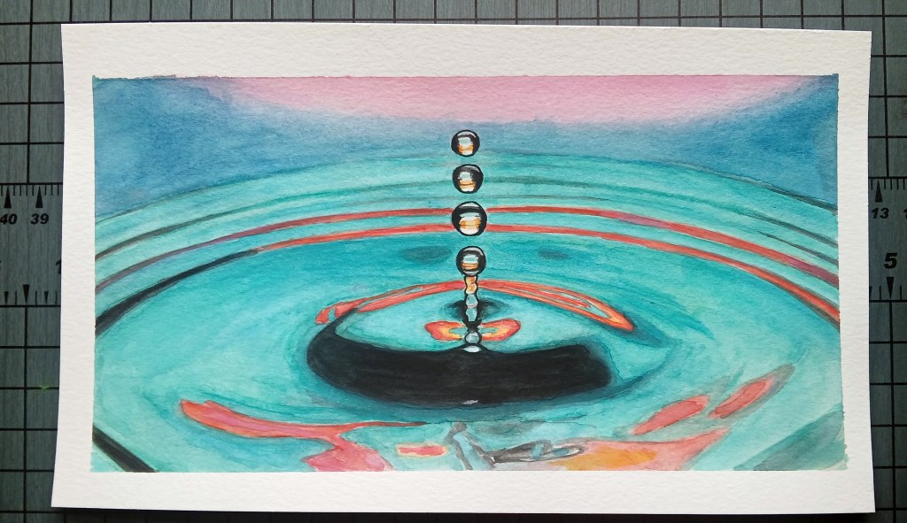 The art used for the ticket stubs was a series of watercolor paintings of water ripples and droplets I made. After sketching countless spherical things, the droplets landing on my phone during a rainy week inspired me to create this series.