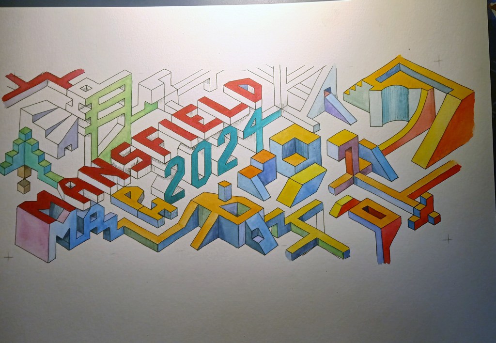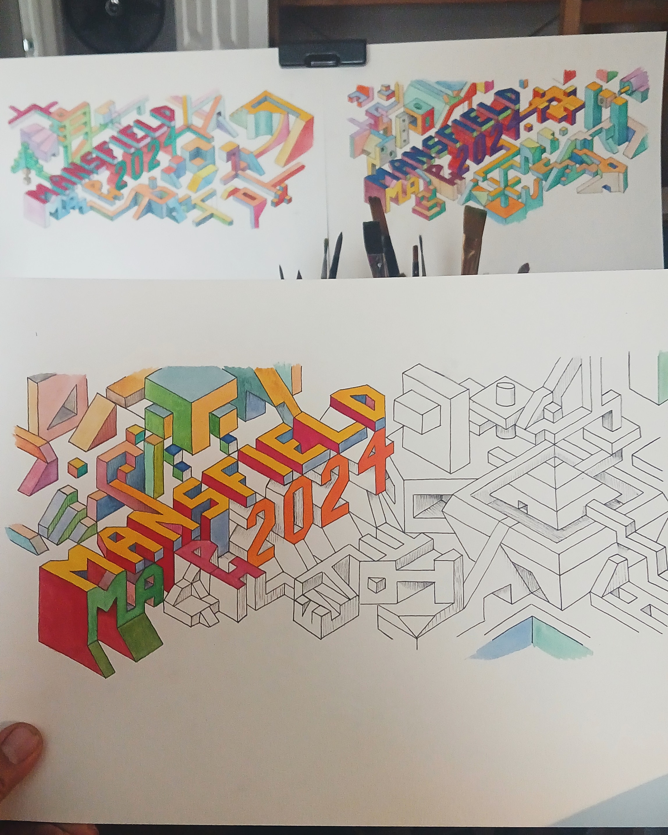 I used the Mansfield run art as a way to explore isometric art and see where it would lead me. The process of drawing them had a very improvisational feel, with the grid leading me around the drawing.