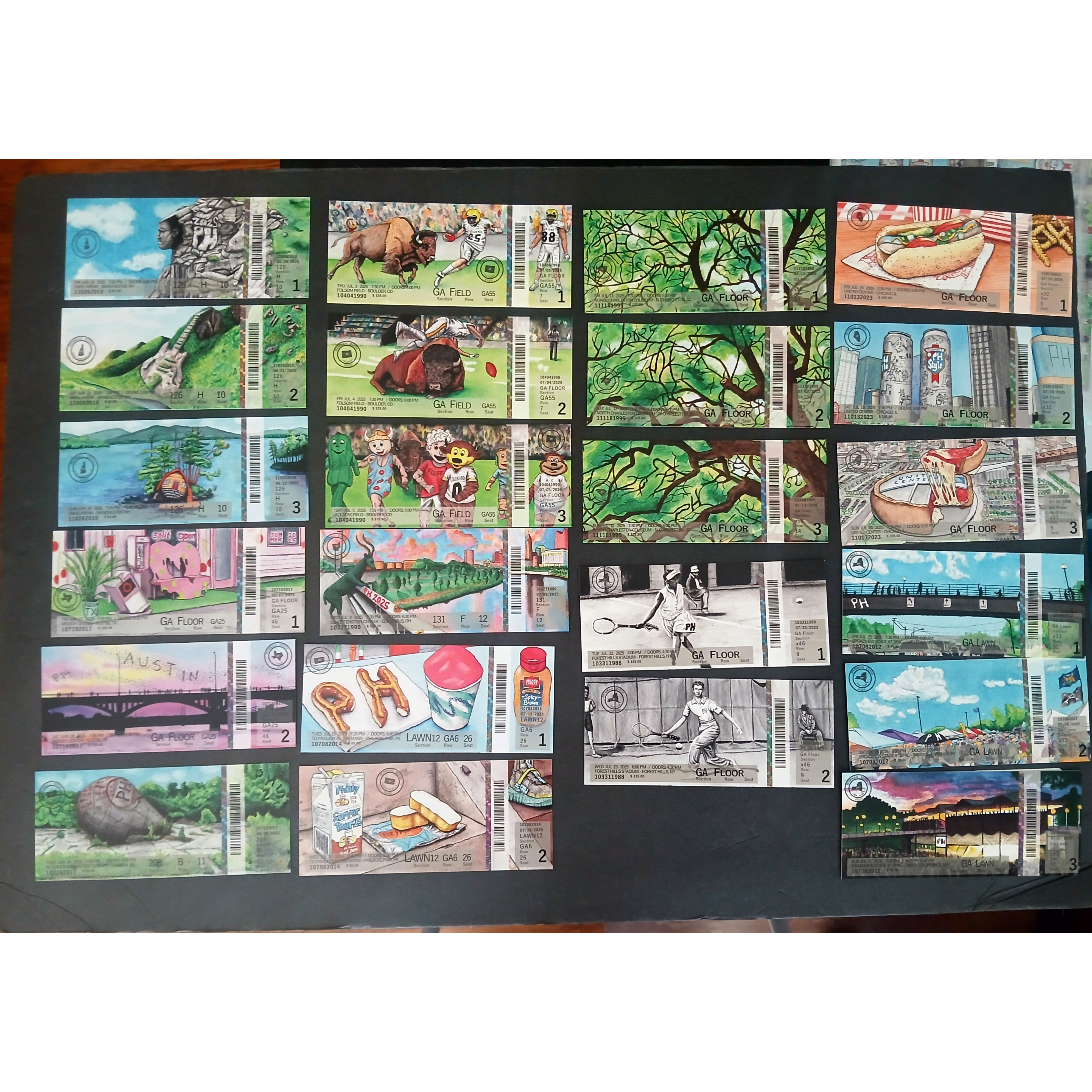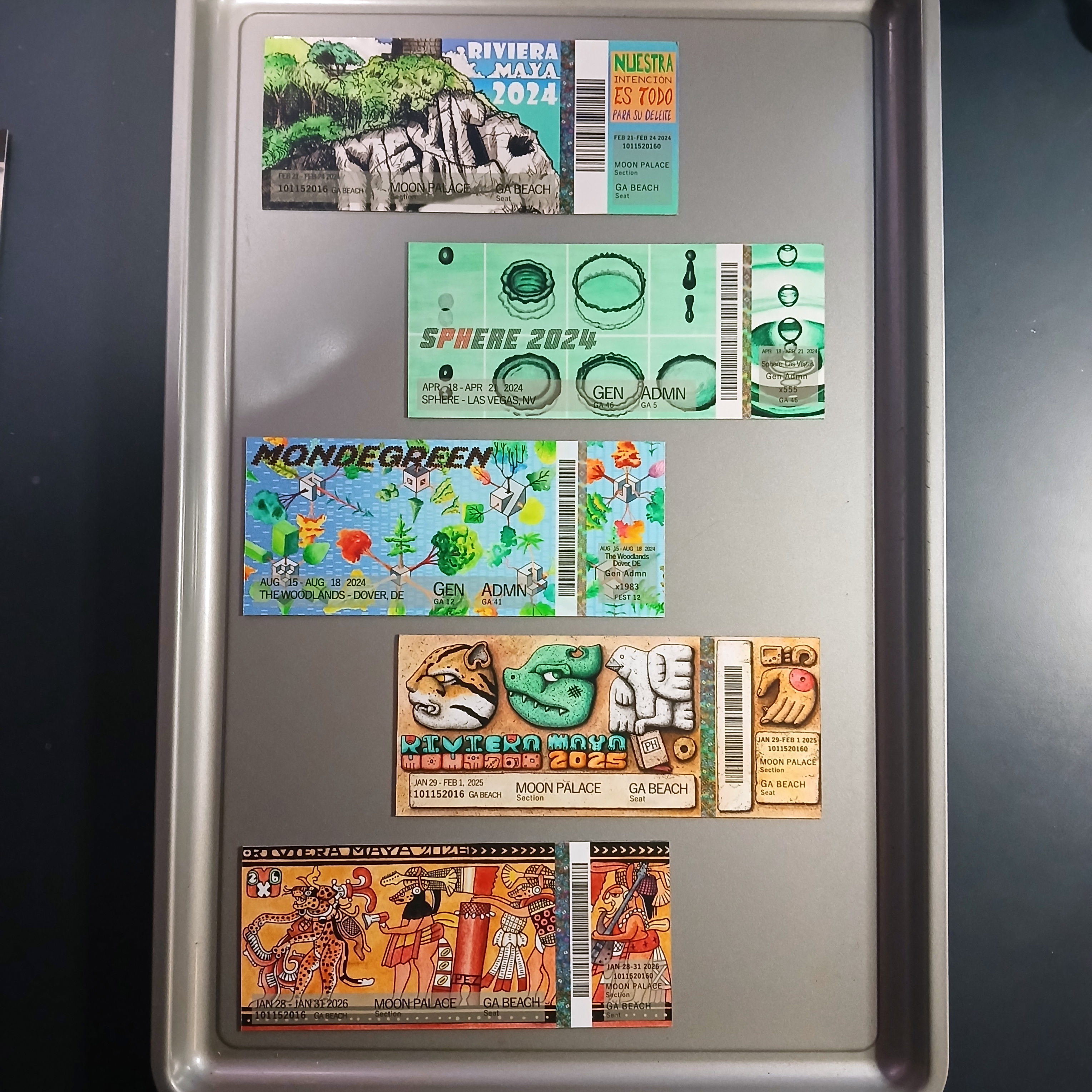 I’ll be bringing past and present ticket stubs, going back to 2022! I’ll have art prints and stickers (some new designs to debut!), as well as some original paintings that I used to create my ticket stubs, at discount prices. I will also be debuting my Riviera Maya ticket and magnet, which will only be available at PhanArt.