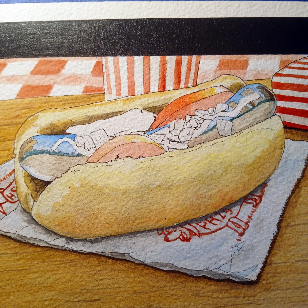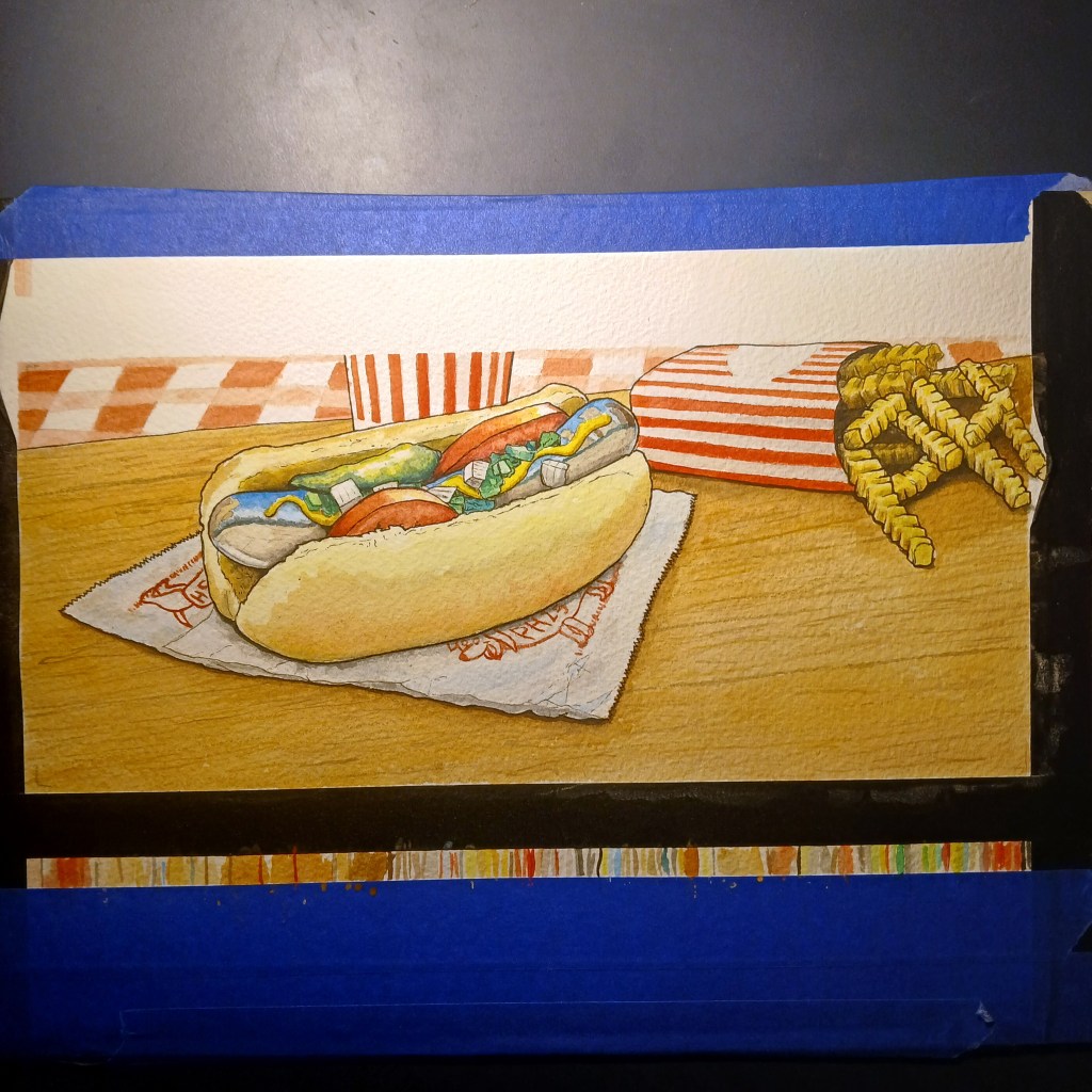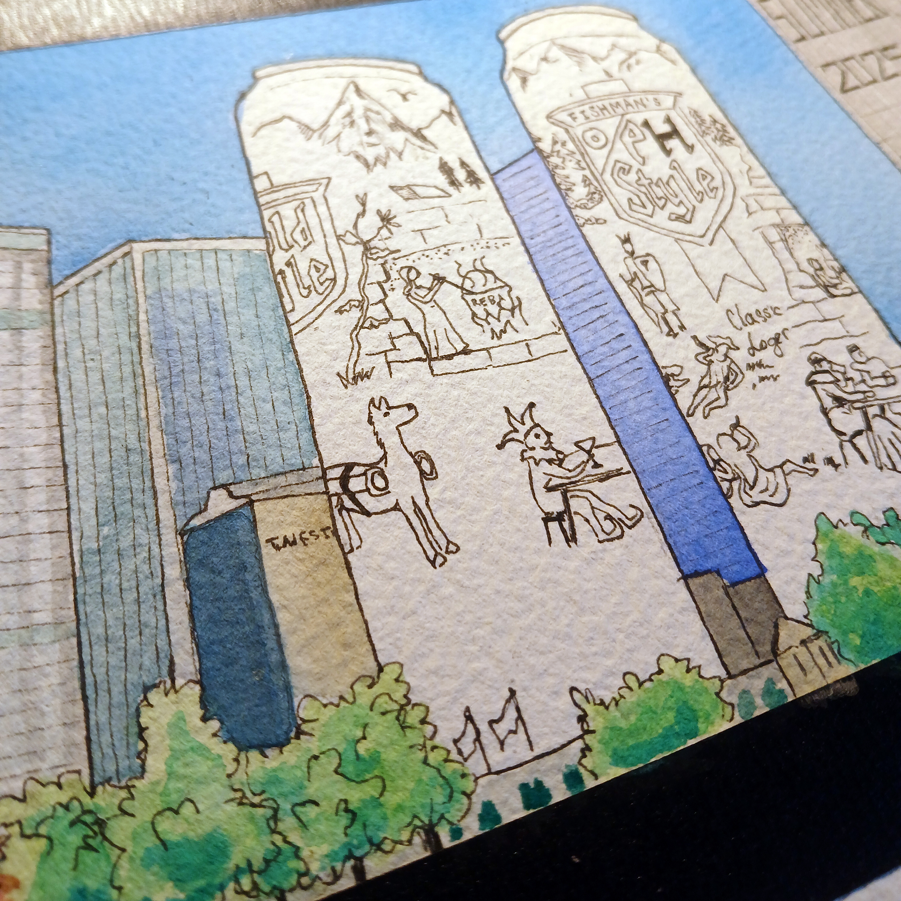 My commemorative ticket stubs for Phish’s three-day run at the United Center in Chicago, IL. The artwork used was several ink and watercolor illustrations I created. I inadvertently continued the food theme from the Philly stubs, and had this idea years ago for a tour poster series, right around 2020! I was finally able to use those ideas for these stubs. Night one has the Bean (actual name Wind Gate) in a Chicago-style hot dog. Night two has the Marina City towers replaced with Old Style tall boys, and night three presents the United Center as a deep dish pizza.