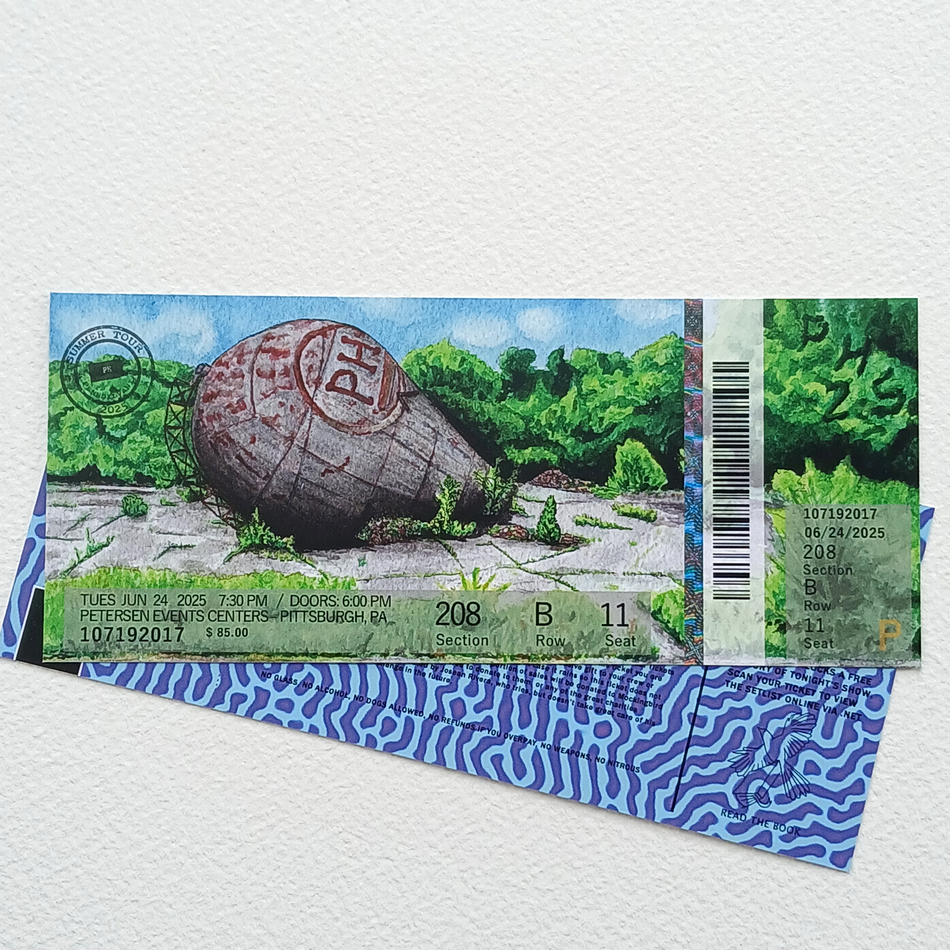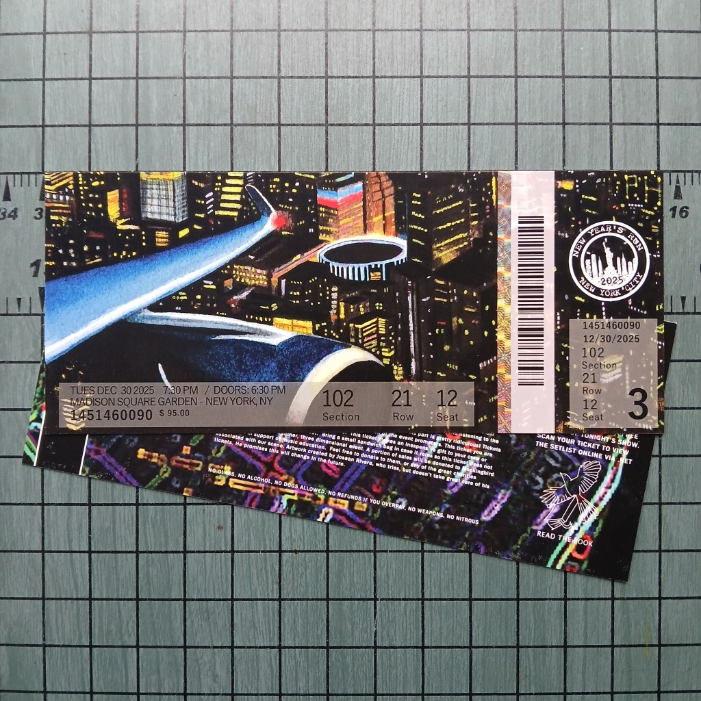 Each stub measures 2.75 x 6.5 inches (the same size as PTBM tickets) and is printed on coated 130 lb card stock by Fireball Printing in Philadelphia. The back features a spot to write down your actual seat/section. I will also include a mini art print/postcard with each order, along with other freebies while supplies last. Purchase here: https://joseeen.etsy.com/listing/4411937075