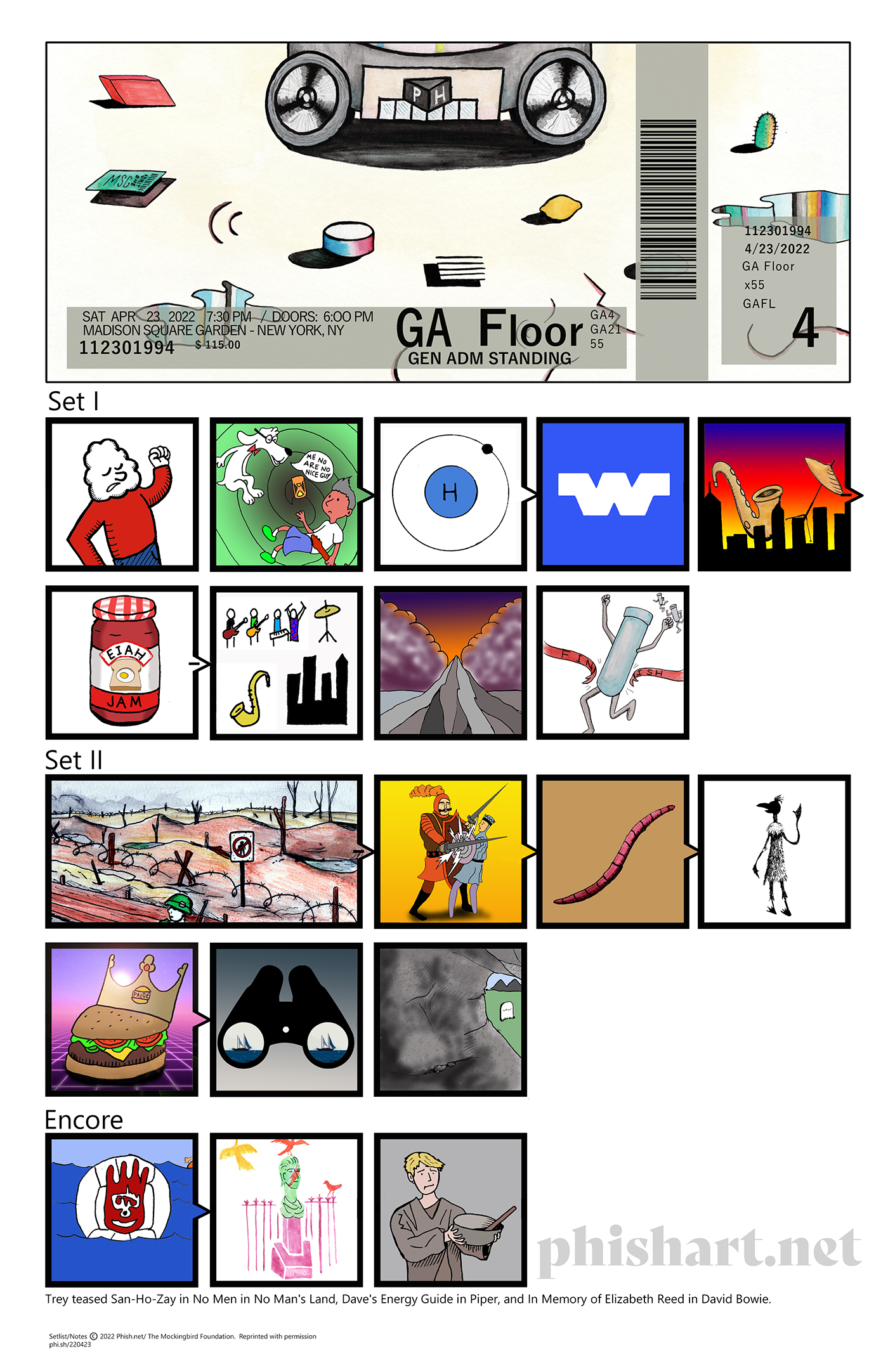 Setlist/notes © 1990-2023 The Mockingbird Foundation, Inc. and used with permission. A portion of profits from all setlists sold is donated to the Mockingbird Foundation.