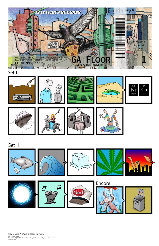 Old habits die hard! Creating ticket stubs has taken up most of my time this year, forcing me to set aside the setlist art this year. While I still create them via commissions, I couldn’t help but create the MSG NYE Run setlists! These will be a smaller edition (only 25!) but are also available as digital downloads.