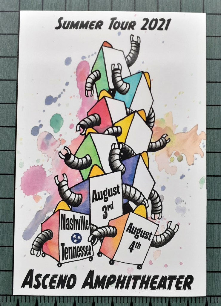 2020 sucked. I wouldn’t say 2021 is a lot better, but at least we have live Phish concerts, which allows me to create new phan art prints! Most of my prints for this tour were started in early 2020, still unaware of what would occur that year. In previous years I have often done a series of posters with a common theme (check them out here:2016, 2018, 2019). It is a fun project, but involves a lot of research and preparation, and a lot of stress! I had decided back in 2019 that my next series of prints wouldn’t have a theme. This gave me the freedom to create them using different styles and mediums. I had been taking some graduate courses and was also able to apply some new and forgotten knowledge to my work!